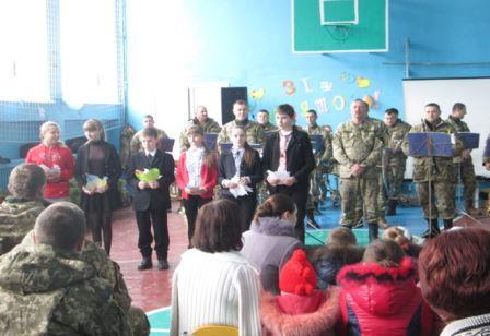 Концерта програма «Слава українській армії» включала вірші та пісні, присячені нашим захисникам. А виступ військового оркестру 26-ї Бердичівської артилерійської бригади залишив незабутні враження. 2 години чудової музики та чарівної української пісні промайнули на одному диханні. Діти підготували подарунки – листи-сувеніри воїнам. Ці паперові голуби – побажання миру кращим синам України. За матеріалом відідлу освіти Артемівської райдержадміністрації.